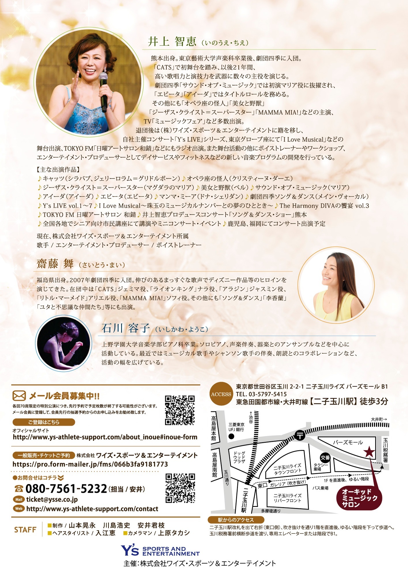 - >Y’s ライブ vol.8 井上智恵サロンコンサート「New Year’s Greeting」 公演決定!