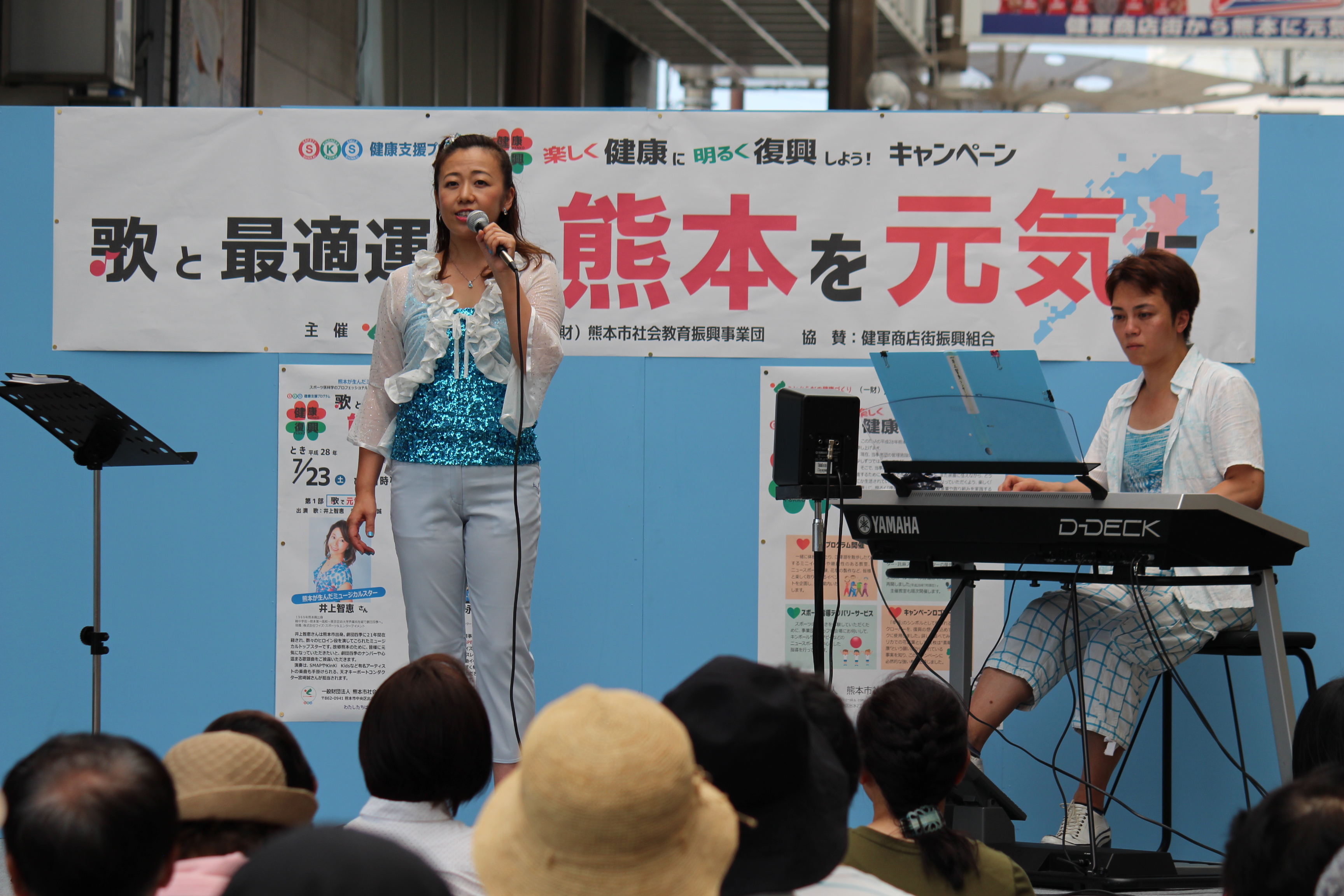 2016年1月より弊社に入社した熊本県出身の井上智恵と代表の山本が、被災地の皆様に向けて、歌と最適運動イベントを開催致しました。