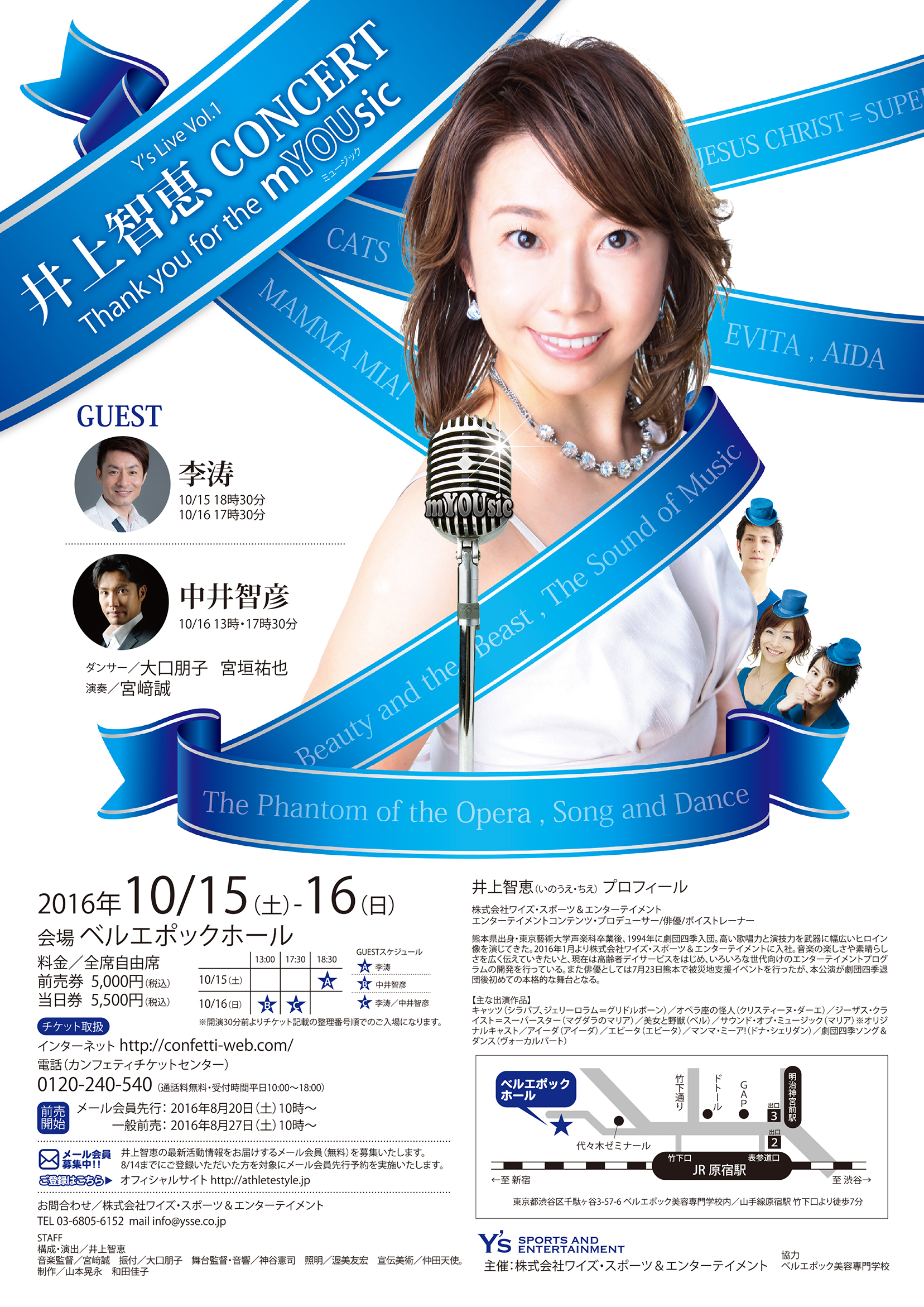 - >Y’s ライブ vol.7井上智恵サロンコンサート Your & My Favorite Songs♪ 公演決定!