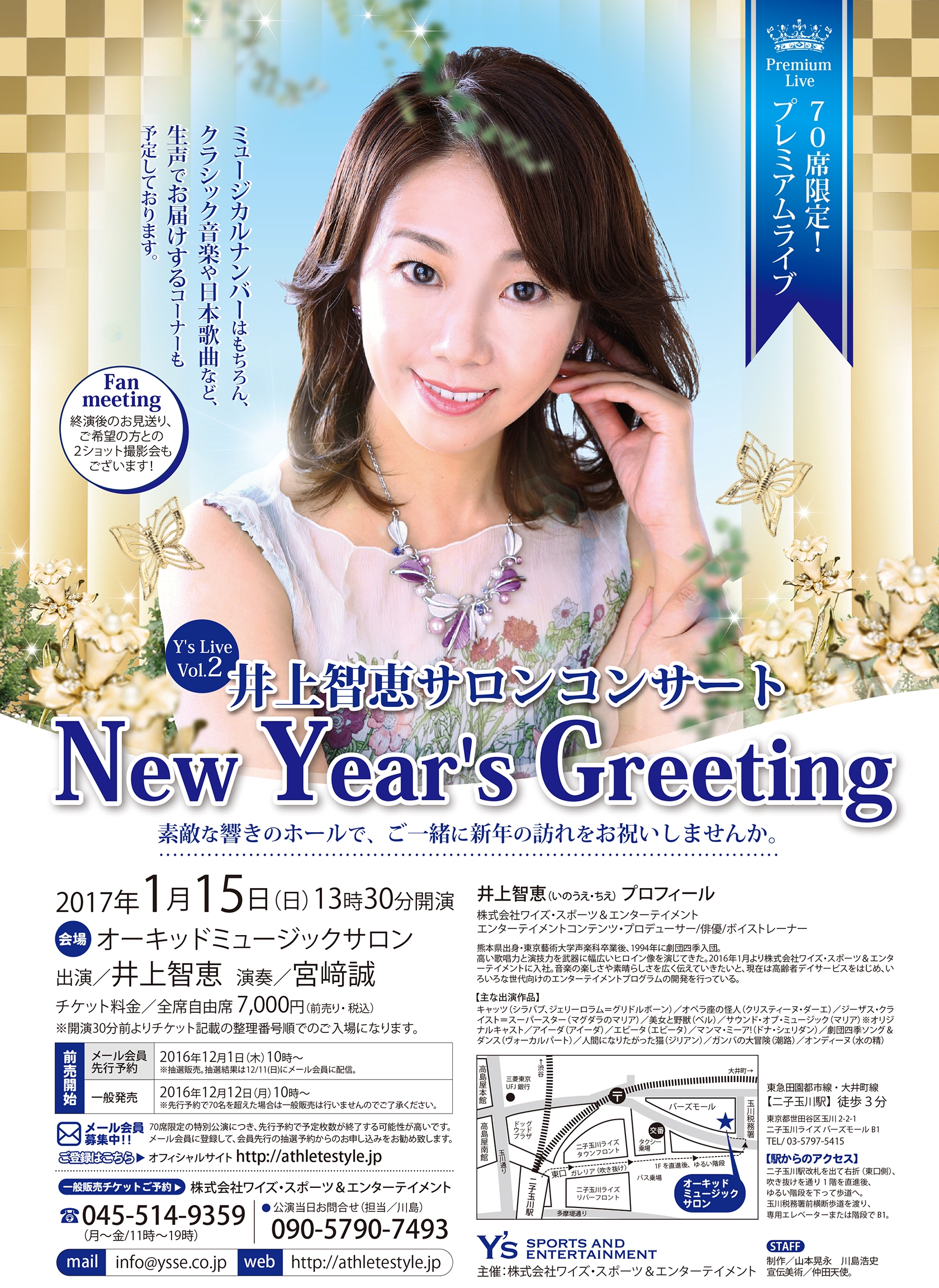 - >Y’s ライブ vol.8 井上智恵サロンコンサート「New Year’s Greeting」 公演決定!