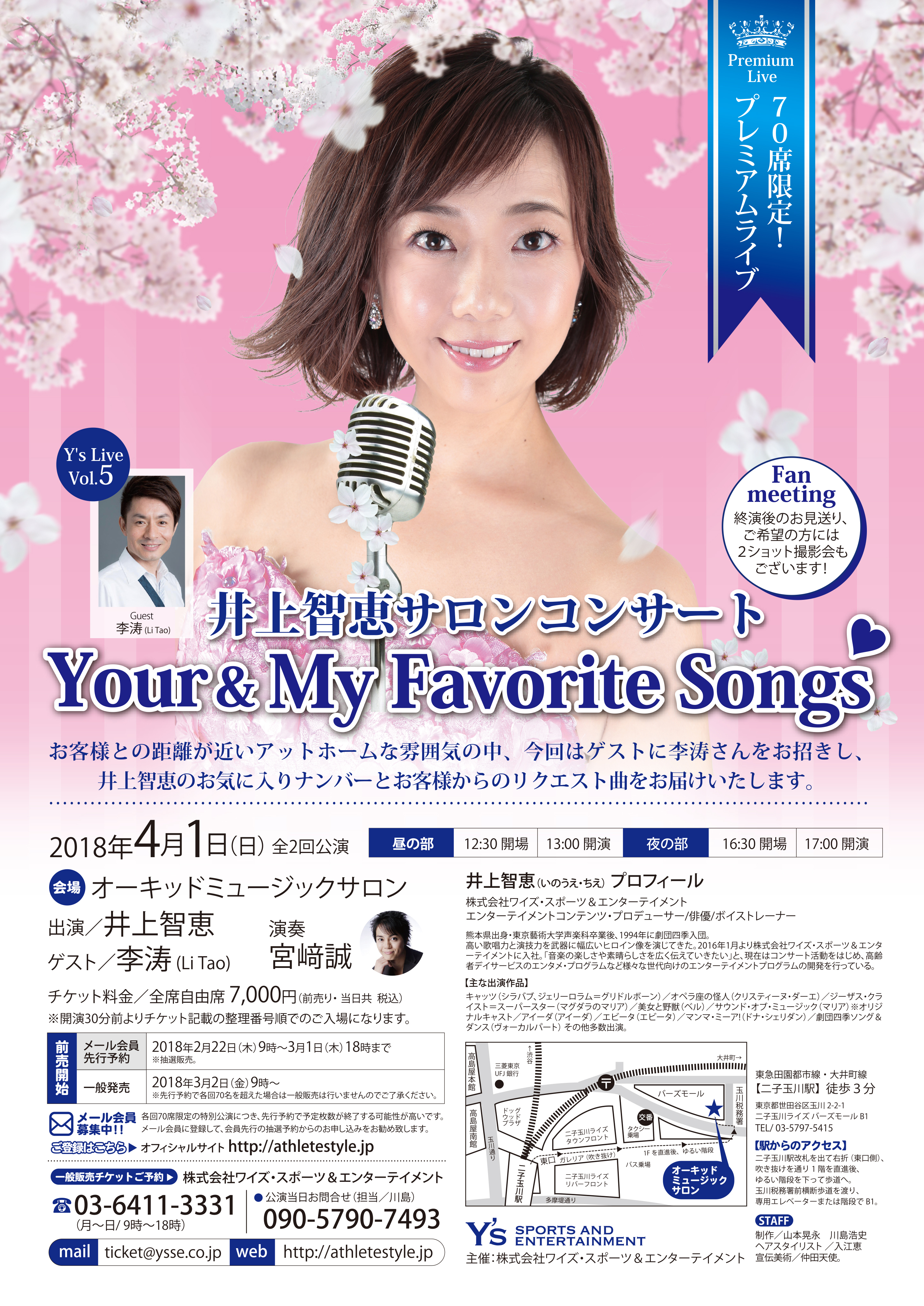 4月1日(日)に行われましたY’s live Vol.5 井上智恵サロンコンサート「Your &My Favorite