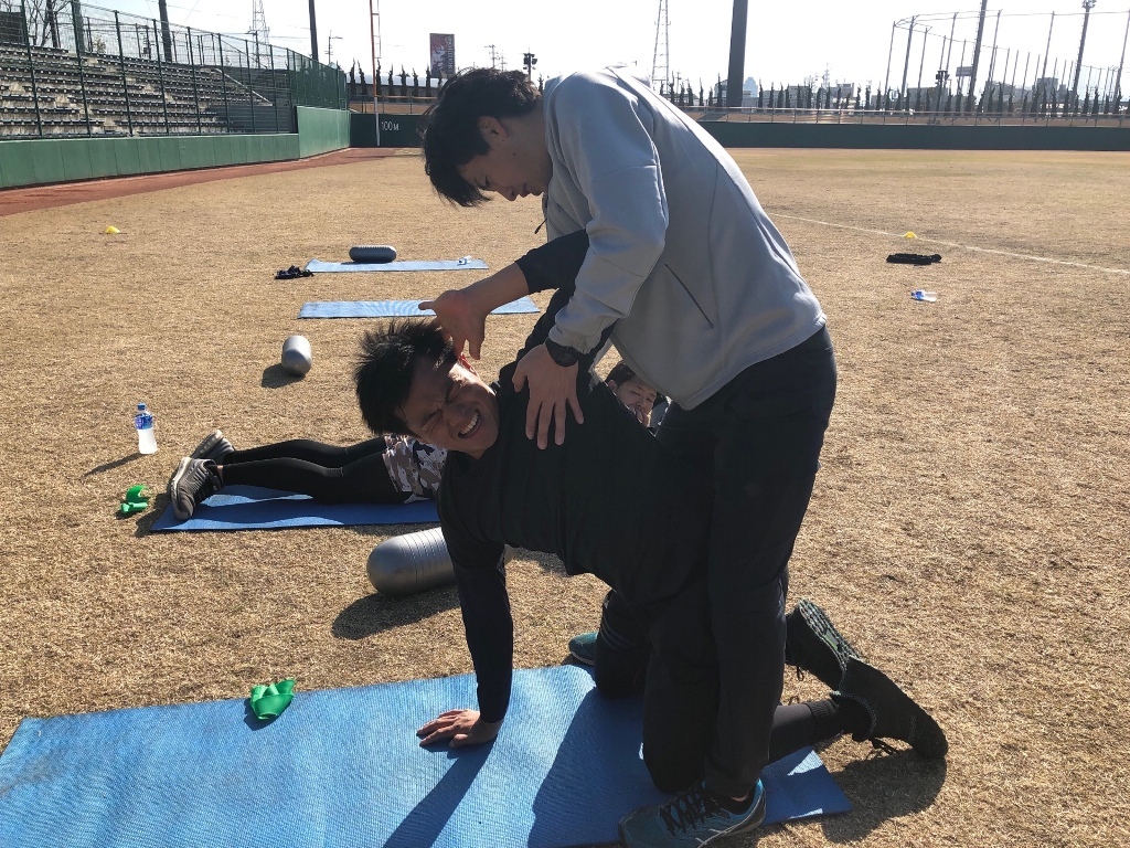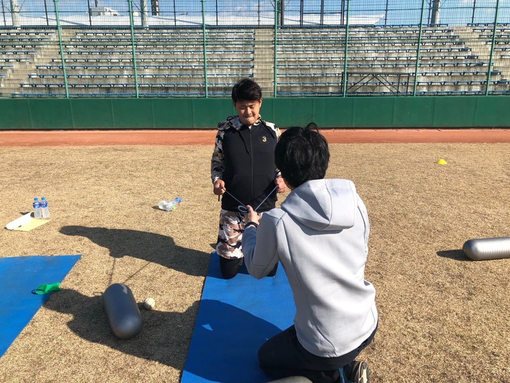 愛媛県今治市で行われている東北楽天ゴールデンイーグルスの浅村栄斗選手、埼玉西武ライオンズの熊代聖人選手、外崎修汰選手、呉念庭選手の自主トレーニング帯同し、日々選手のパフォーマンスを上げるためのトレーニングを行っています。